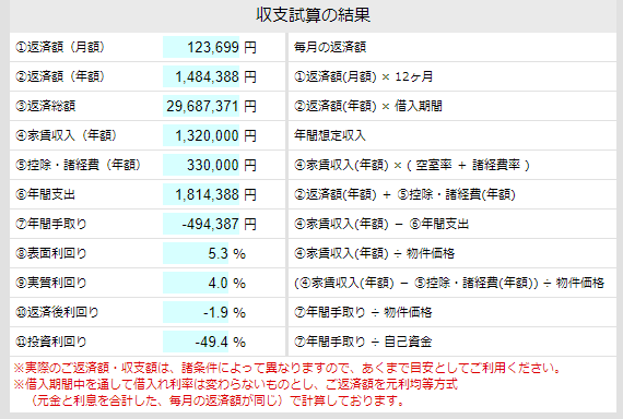 修繕費はシミュレーションに入れてませんので、長期になれば給湯器やエアコンなど故障しますし、さらに赤字は膨らみます。