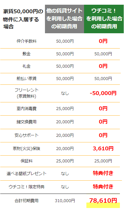 ウチコミ!掲載は実は大家さんにとってもお得なので、その分大家さんが特典をつけていることも